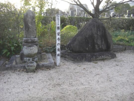境内の本堂前横に 勝栄寺の板碑(県指定文化財)
