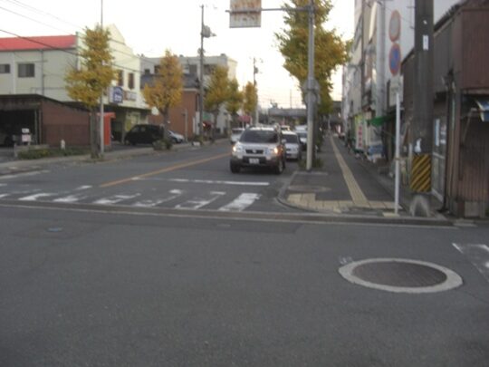 130m程進むと平野に入り、左の宇都宮医院のすぐ先の信号交差点を横断して100m程先の分岐を右(西)の折れます
