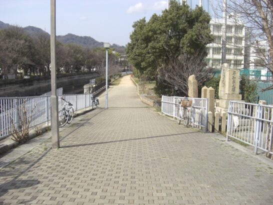 暫く進むと蓮池町に入り右に大きな西代蓮池公園があります。昭和六年まで、ここに「蓮の池」という四町2反の大池があり、奈良時代に農業用水として作られたもので、僧行基が作ったと伝えられています。池一面に蓮の花が咲いて何時しか蓮の池と呼ばれた。その池を埋め立て蓮池小学校がたっています