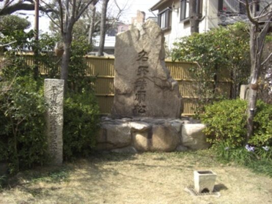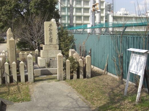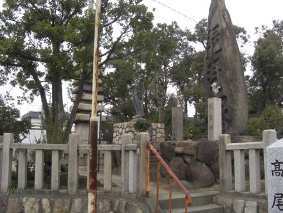 楠木正成墓碑 碑の面に「嗚呼忠臣楠子の墓」徳川光圀の筆、背面には光圀に仕えた明の儒学者朱舜水の撰文が彫られている