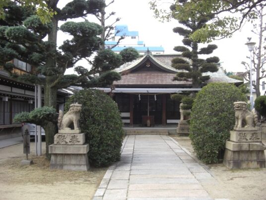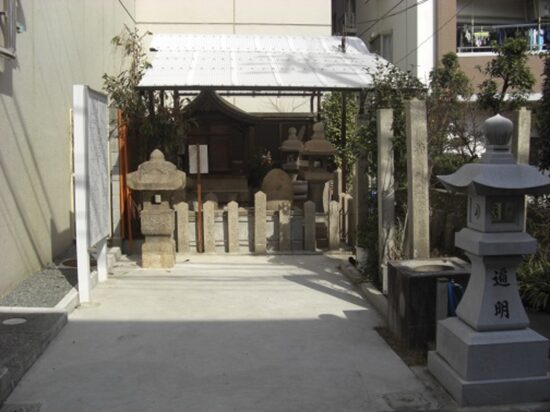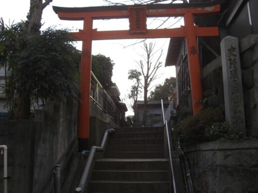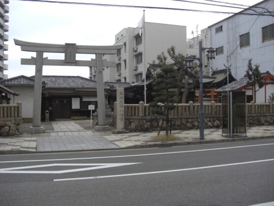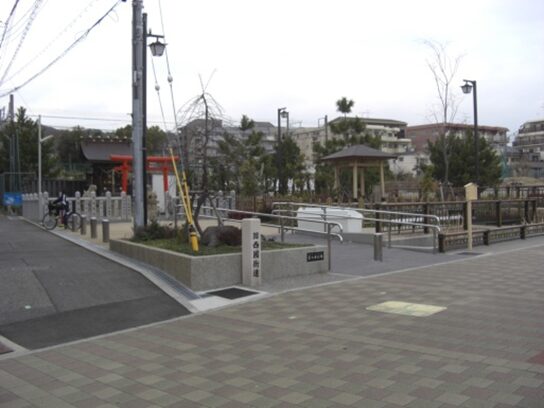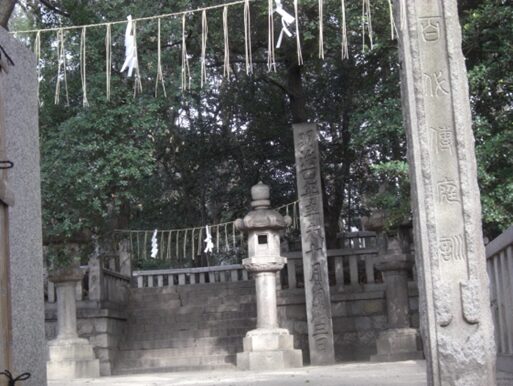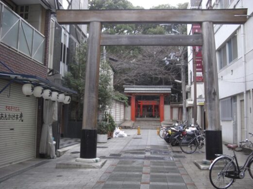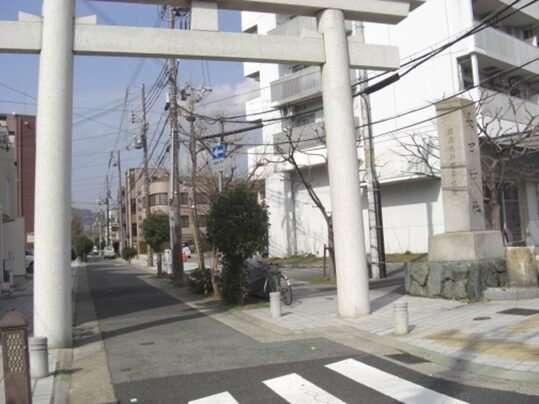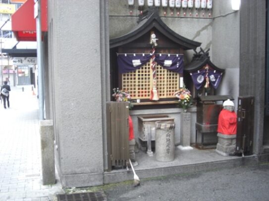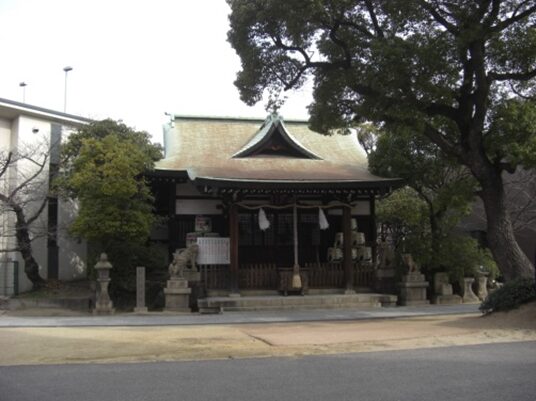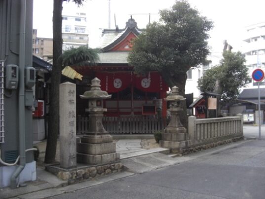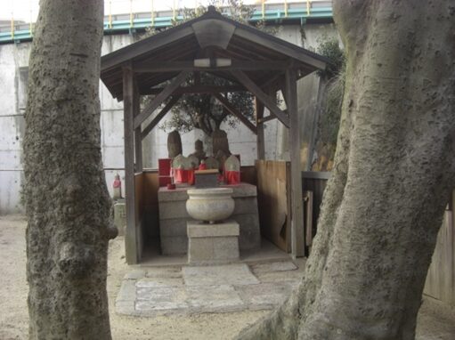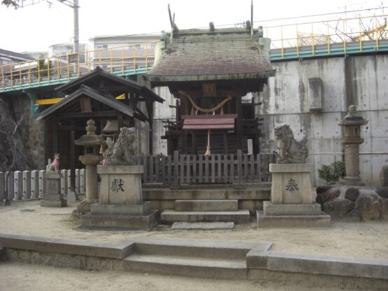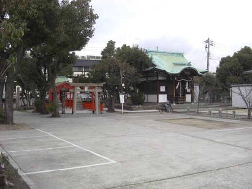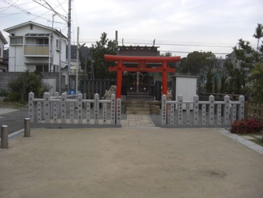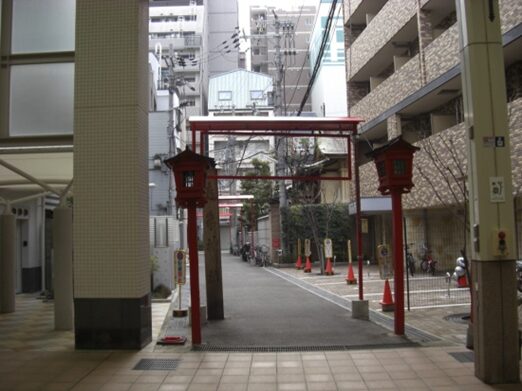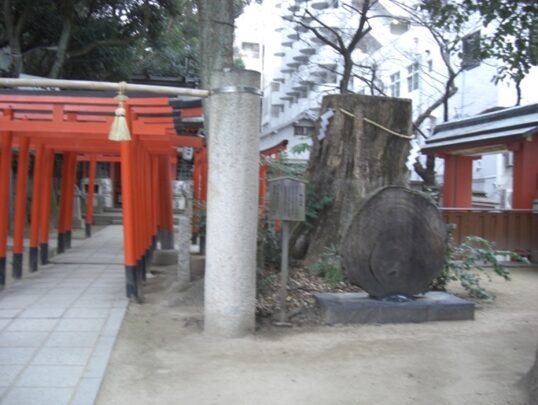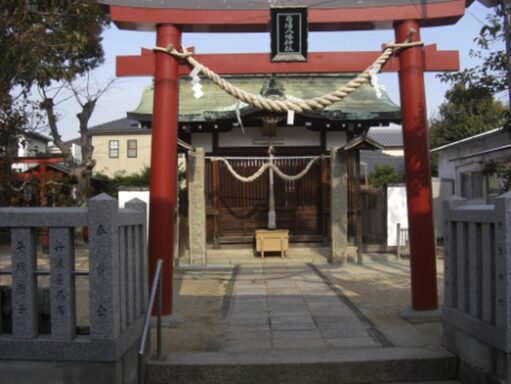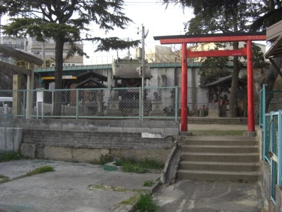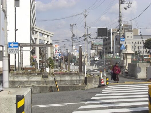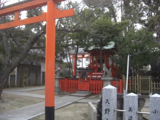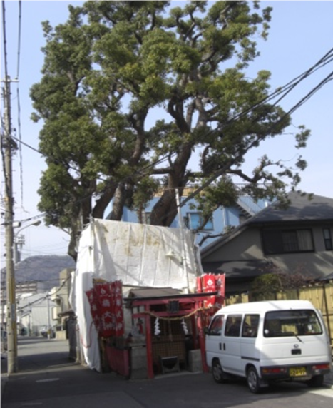 交差点から300m程進むと西代通り2丁目の所、右にクスノキの大木があり、袂に 楠稲荷が祀られそのご神体になっています。
