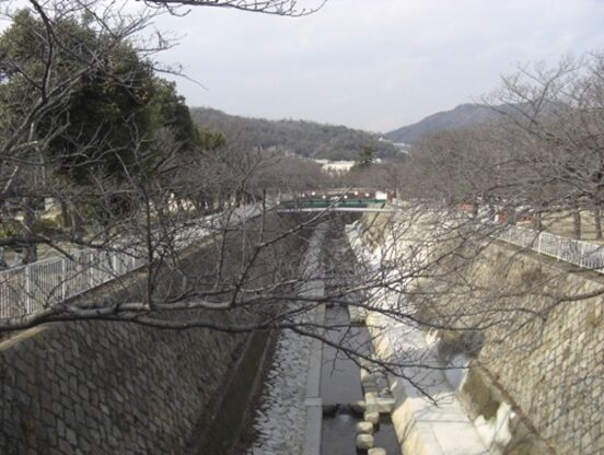 やがて左に須磨警察署をみて妙法寺川に架かる三の井橋を渡ります。橋より右(北)の景色