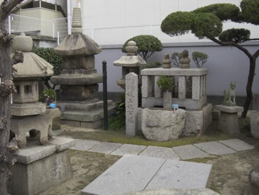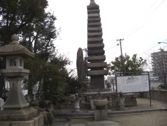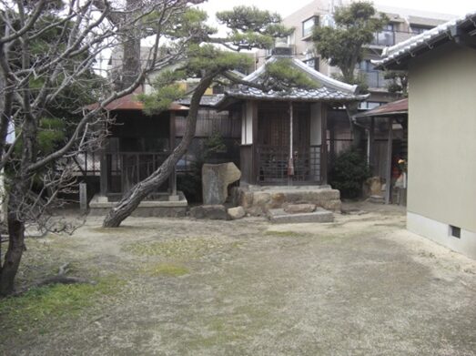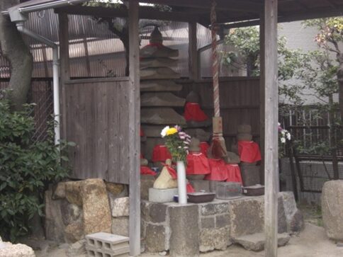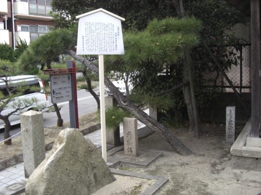 現在の観音堂は庵の跡ともいわれています。伝説にちなんで稲葉町・衣掛町・松風町・村雨町・行平町などの町名がつけられた。また姉妹の墓と伝わる二基の五輪塔が多井畑厄除八幡宮鳥居近くの住宅街の片隅にひっそりと佇んでいるという。
