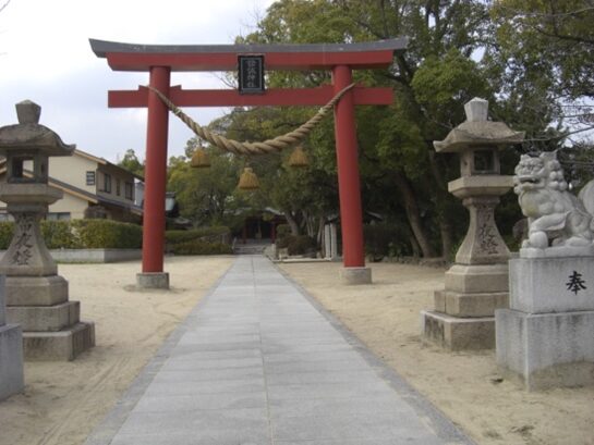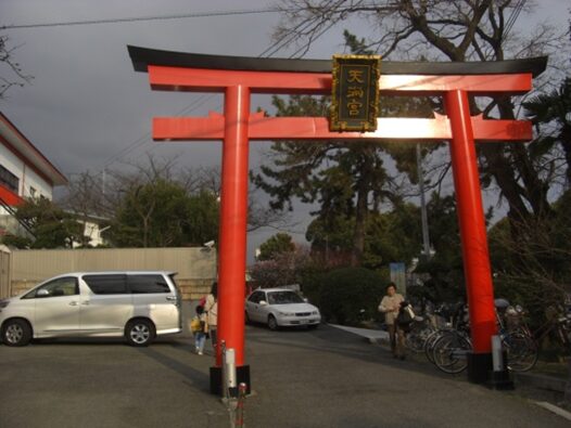 山陽電鉄の踏切を渡り今度は左に暫く進むと 綱敷天満宮