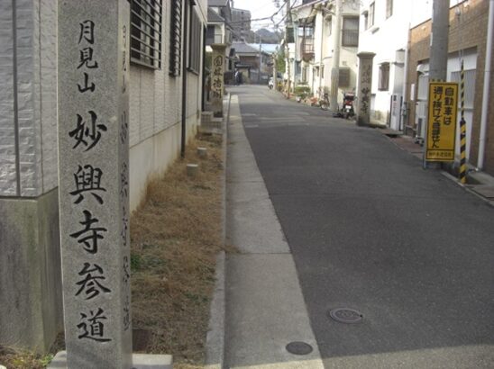 浄徳寺の西南に 月見山 妙興寺 妙興寺参道の石碑が建っています
