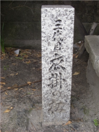 道標 「生田森 左 京大坂道 右 兵庫播磨道 西ノ宮 四里三丁」と刻む
