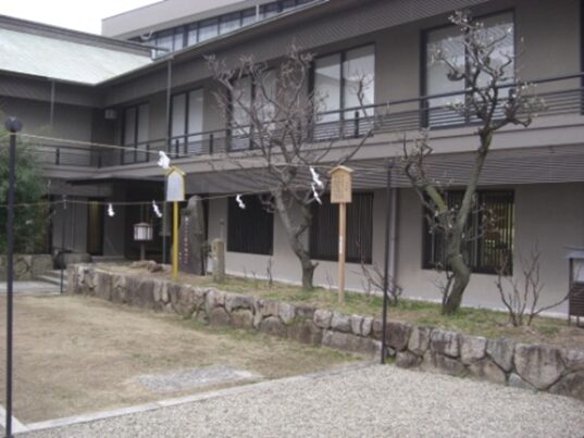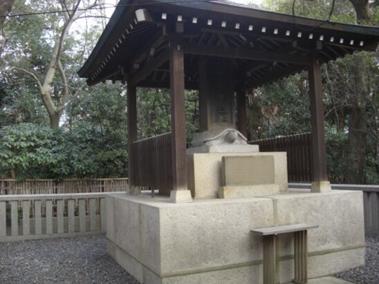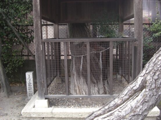 降雨園内に 菅公手植えの松株 東屋に覆われて整備されています