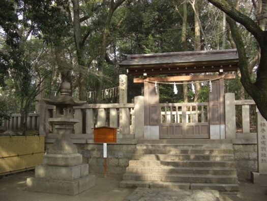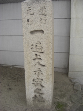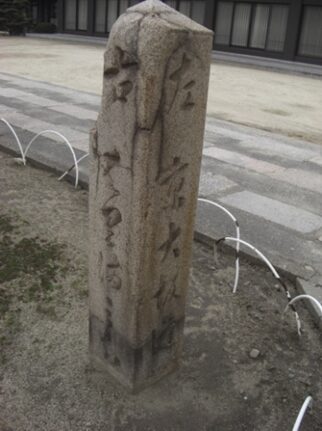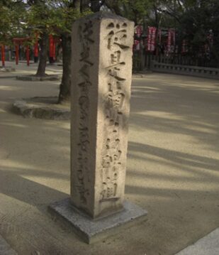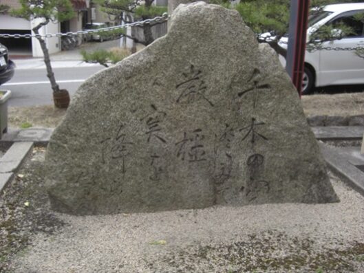 神社につきものの鳥居がありません 境内右に立つ 道標「従是楠公石碑道 従是くすのき公せ記ひみち」弘化三年(1846)。元西国街道沿いにあった