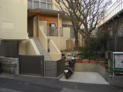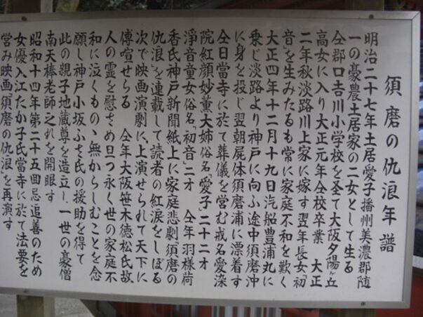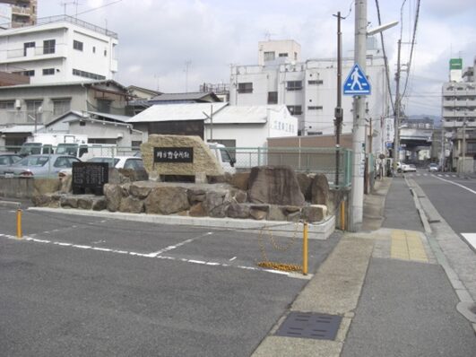 少し先の信号交差点を右に入っていくと山陽電鉄月見山駅です。駅から南に下ったあたりがかつての須磨の中心であった。多くの民家や商店も本陣もあり小さな宿場であった。大正九年の記録では須磨町役場・陣・芝居小屋・カフェー月見軒・ちょうちん屋・桶屋・撞球場があったという。