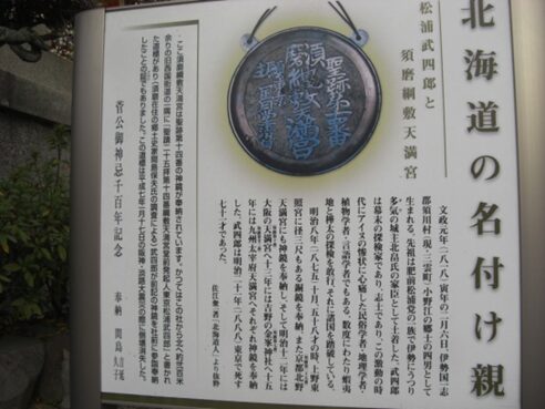 北海道の名付け親、松浦武四郎の案内板 幕末の探検家でアイヌの惨状に心痛した民族・地理・植物・言語学者、数度にわたり蝦夷地と樺太の探検を敢行。