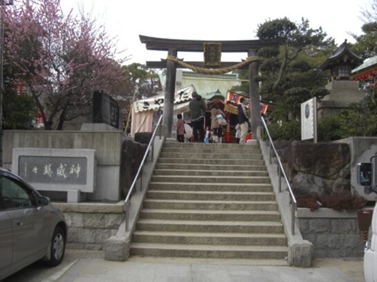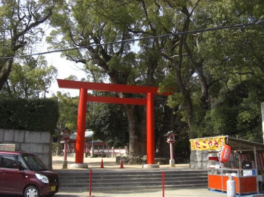 そこの信号交差点を左に少し入ると 弓場(厄除)八幡神社