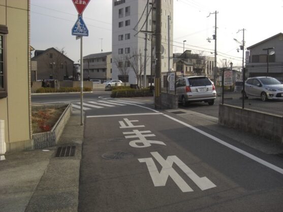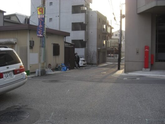 交差点を西に数十m進みますすき家の手前を少し右に入ったところにビルの