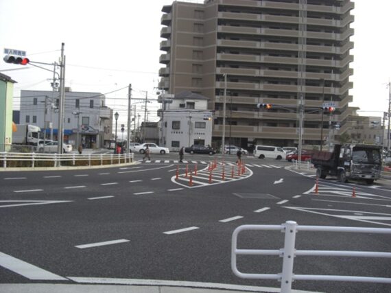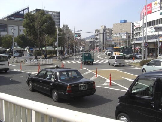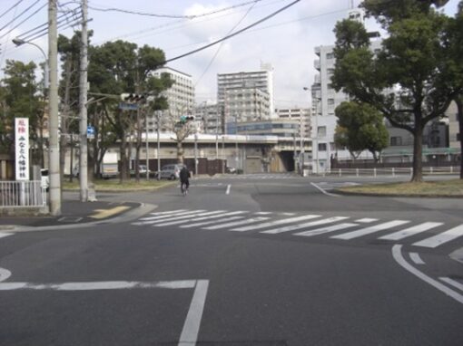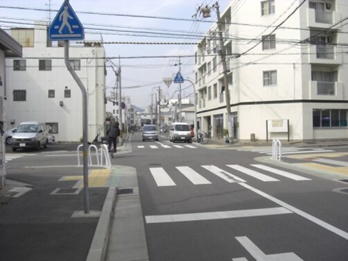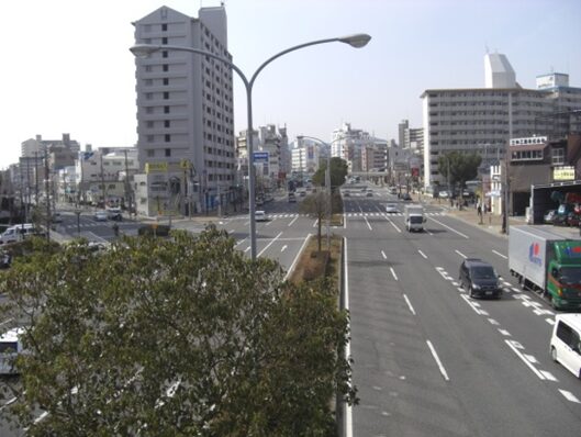 湊八幡神社前交差点よりJR山陽線(北)方向を振り返る