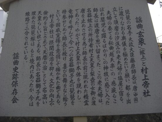 琵琶の名人藤原師長の琵琶塚 師長の名器獅子丸を埋めた場所と書かれています