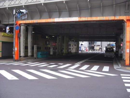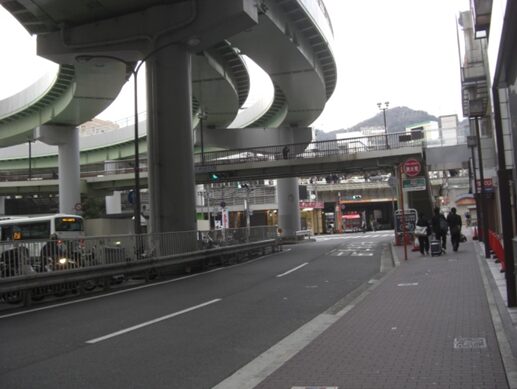 神戸三宮南側、神戸東急イン、サンシティ前正面のJR線・阪急線の高架を潜る