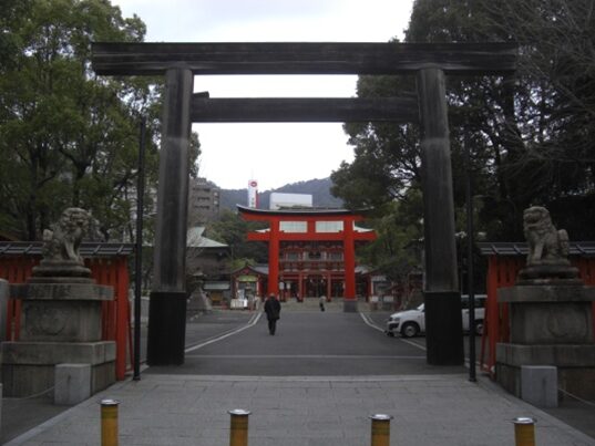 阪神・淡路大震災で、神社の拝殿は崩壊したが再建され朱色の拝殿が蘇った。この神社の背後の生田の森は、源平の戦いに始まり、楠木正成と足利軍の戦い、織田軍と荒木軍との戦い等、歴史の舞台となっています。