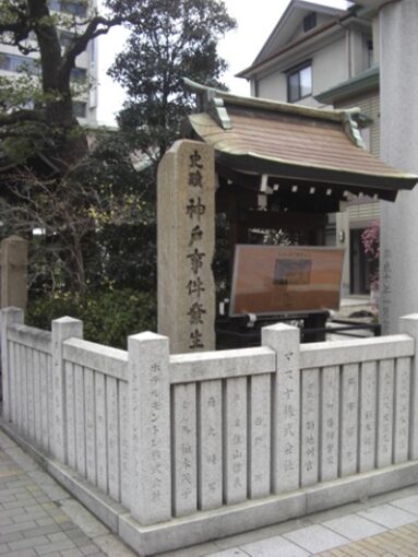 神戸開港まもなくの慶応四年(1868)1月11日鳥羽・伏見の戦い時、新政府が岡山藩に西宮警備を命じその途中、三宮付近にさしかかったとき、フランス人兵士が行列の前を横切ろうとしたので藩士が注意したが言葉が通じず傷を負わせたのに対し、外国兵が上陸一時銃撃戦となり外国兵にこの付近一帯が占拠された。その責任をとって滝善三郎が切腹して落着した事件。