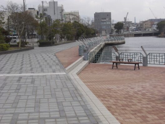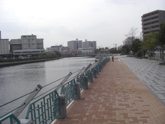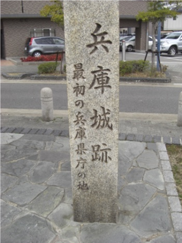 新川運河の角に戻り、運河沿いに南に進むと 兵庫城跡(最初の兵庫県庁の地)の石碑