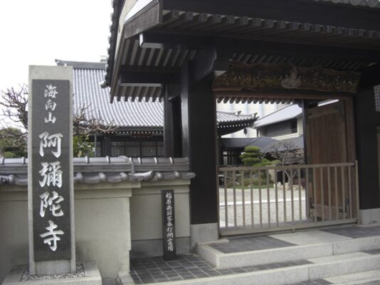 真っ直ぐの道を海岸へ進むと左に 来迎寺(築島寺)大戦の空襲で焼けこの地に移る。