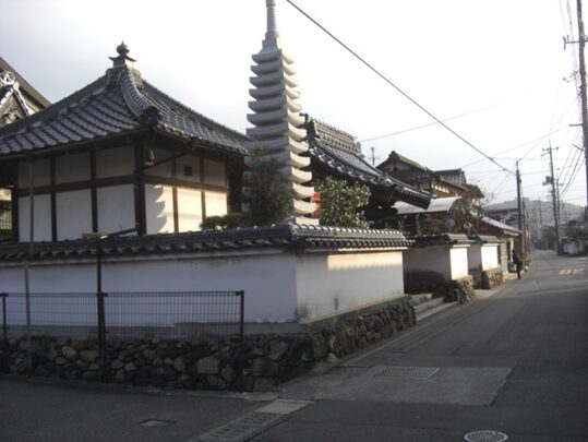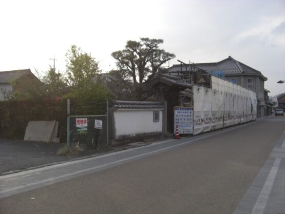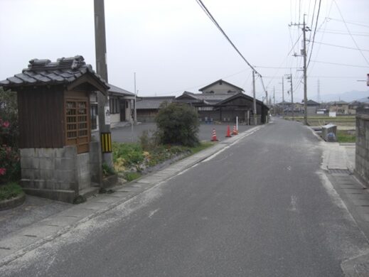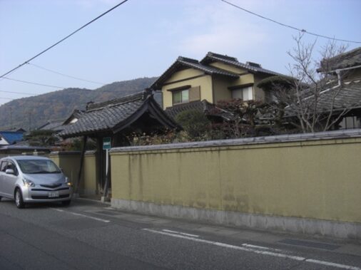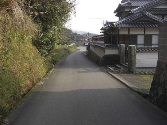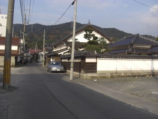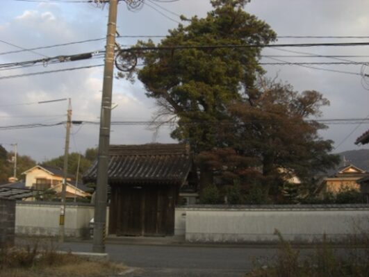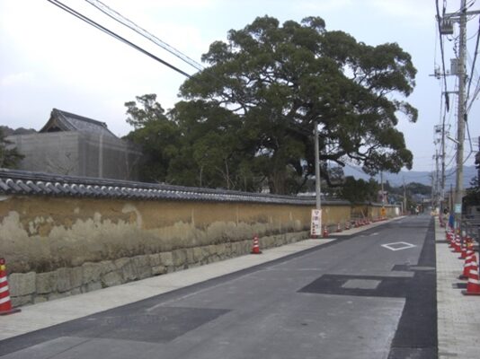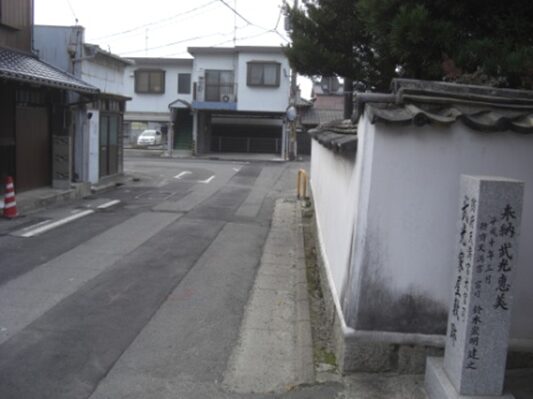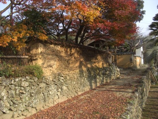 三宝荒神宮の前の街道を130m程西に進むと長い土塀が右に続きます