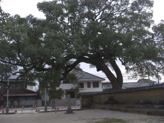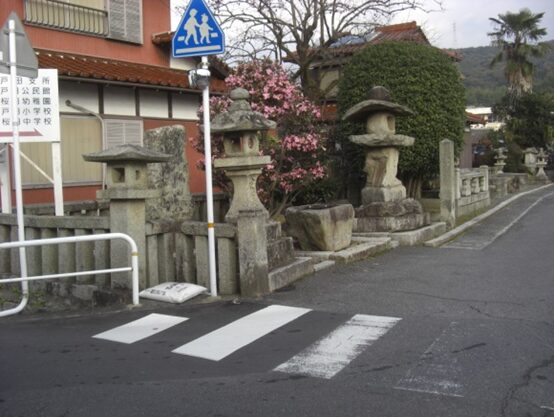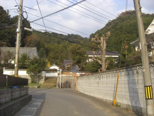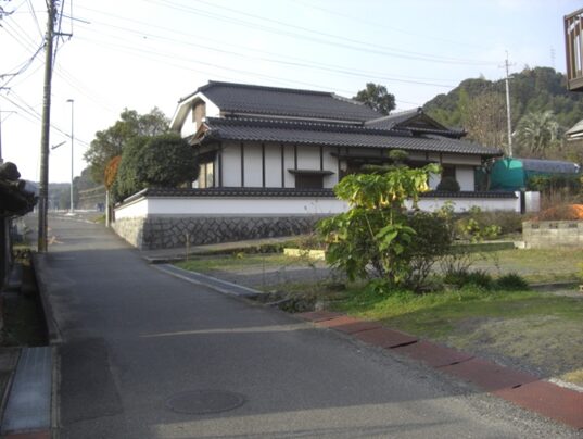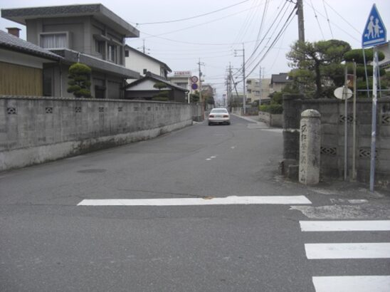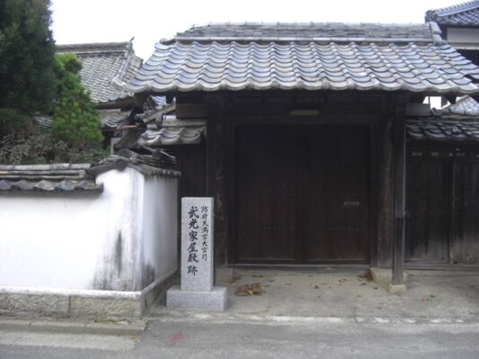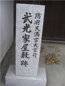 国分寺の十字路より280m程進むと、街道は左にカーブします、その手前右に 防府天満宮の大宮司 武光家屋敷跡