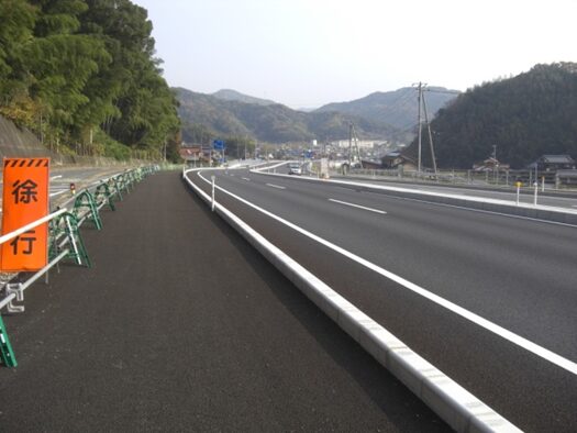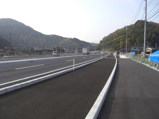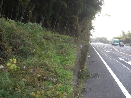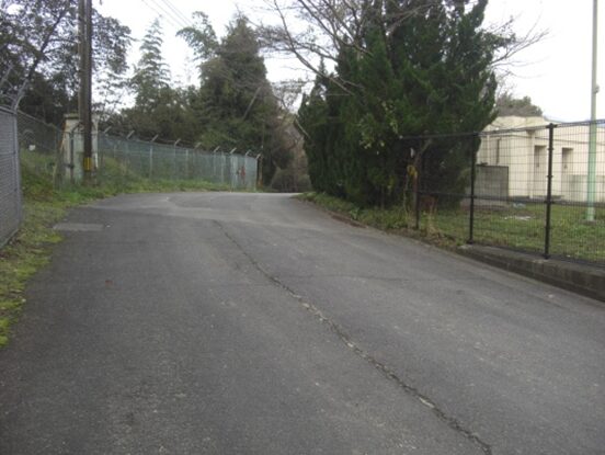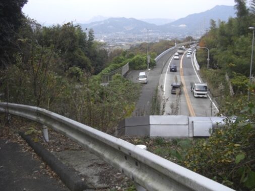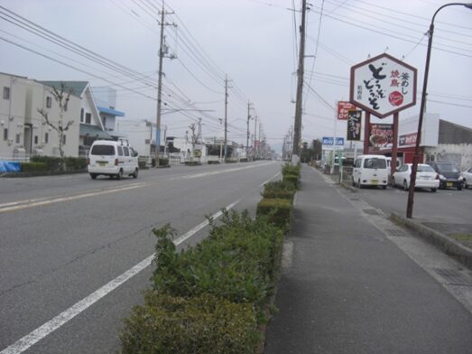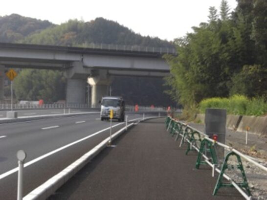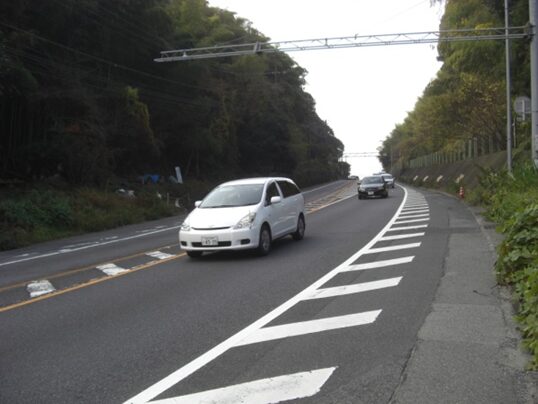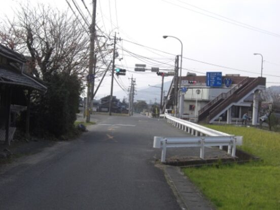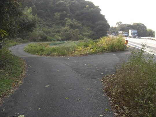 国道に沿ってガードレールのある左への平行した道を進みます