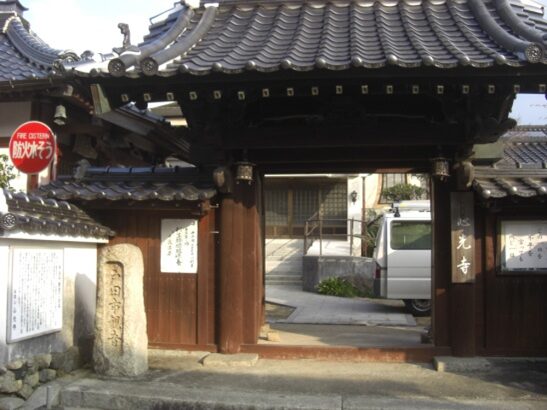 その先で菅原川を渡りますと一筋目の十字路右奥に 浄土真宗本願寺派光西寺 このお寺でかつては小休止跡であった