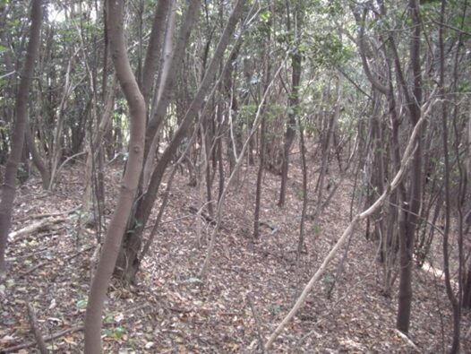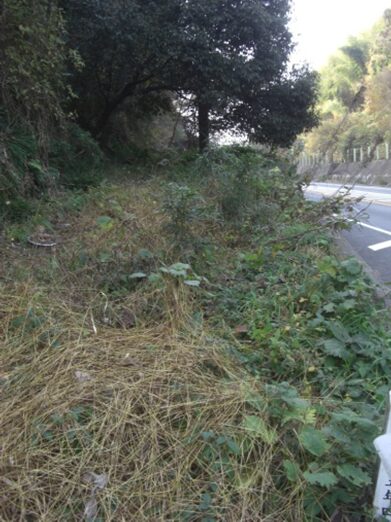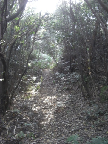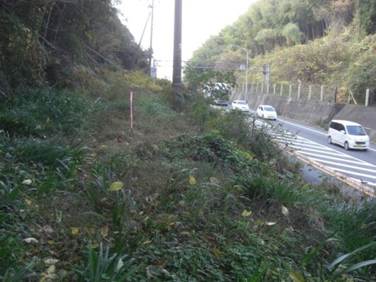 峠近く左に旧道の跡の道が草に覆われて微かに残っています。左の旧道跡の草を掻き分け乍ら、国道より高台への道を進んでいきました