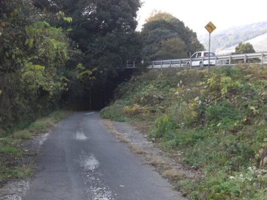 少し下っていくと左への旧道への道があります