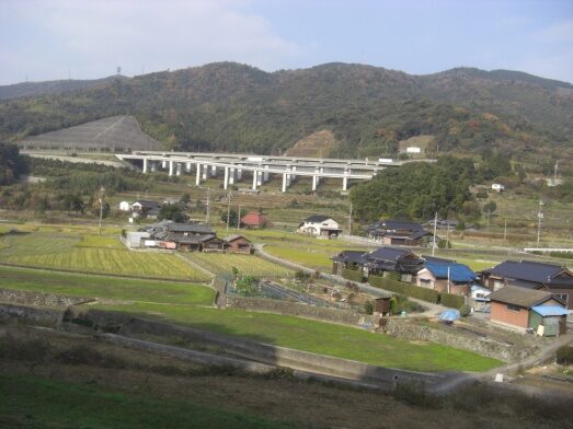 毛利邸の背景(北側)には多々良山(236m)多々良山の地下には山陽自動車道の防府第三トンネルが通っています、並行してその北側には山陽新幹線の多々良山トンネルが貫いています貫いています