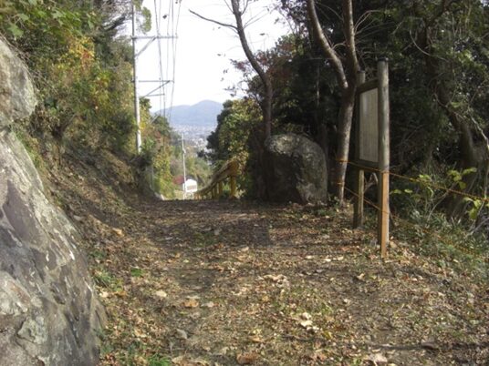 上り詰めたところ右に西徳山総合グランドがあり、街道左側に鉄塔があります。この辺りに 御駕籠立場跡 であったが痕跡はありません