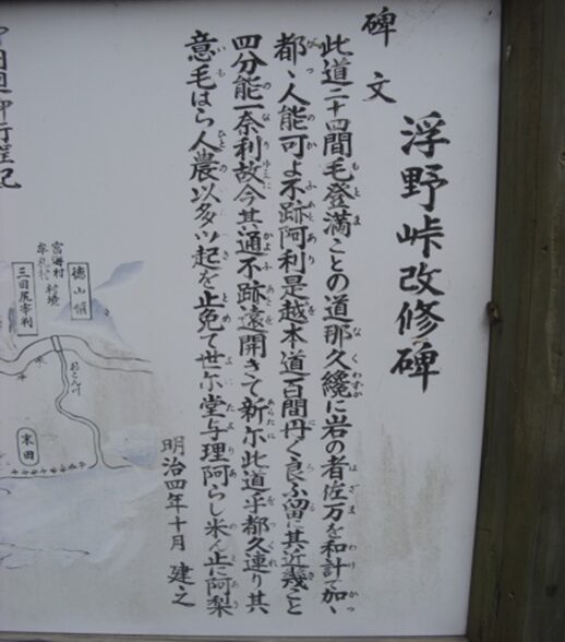 旧峠と現在の新峠道との高低差があります