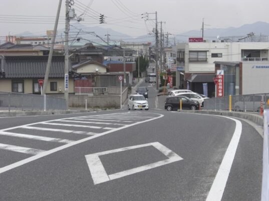 左に折れた矢地市の街並みに入ると緩やかな坂を上ります