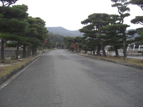 広い道両側に松並木が続き広大な庭園です庭園の北側一帯に新山口カンツリー倶楽部が隣接しています