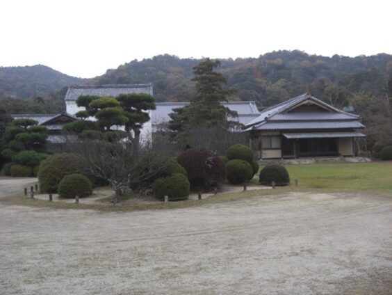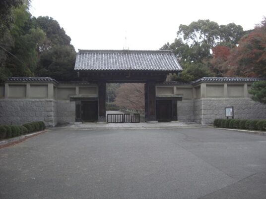 路傍庭園が過ぎると、1200坪(約4000㎡)の豪邸の表玄関が見えてきます。