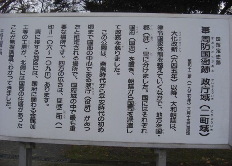周防国衙跡(国指定史跡)道路の両側に広い公園として整備されています