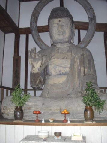 左に折れる前に十字路を右に50m折れた左に 多々良大仏殿