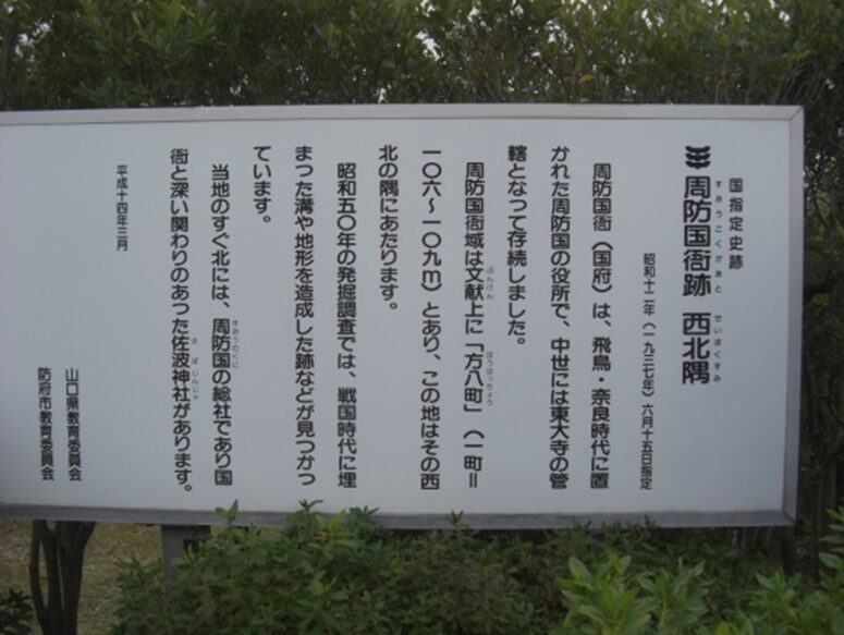 神社の少し先左の国衙北西端に 史跡周防国衙跡碑 広大な地域であったことがわかる