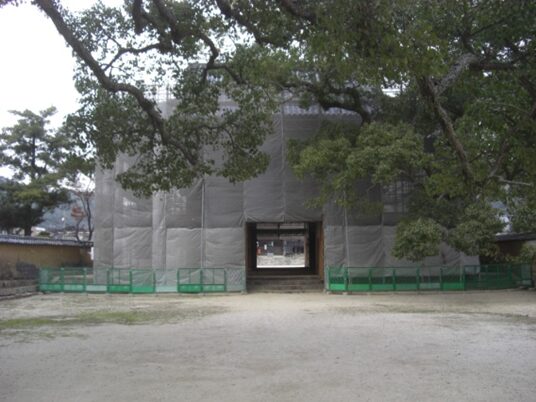 右一帯は 高野山真言宗周防国分寺跡 です 楼門 は改修中