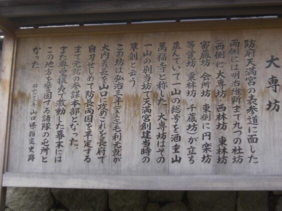 北に多々良山、南に防府市街から三田尻湾を望む地に、大伽藍は、創建当初の地にあり当時を偲ぶことができる寺域面積六十一町歩余りにまたがり、七堂伽藍と二十五ヶ寺の塔頭と末寺を擁して壮大であった