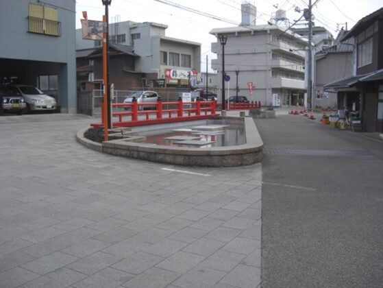 らんかん橋にでたところで、左に折れると防府天満宮の正面鳥居のT字路で、右に折れると三田尻港への萩往還