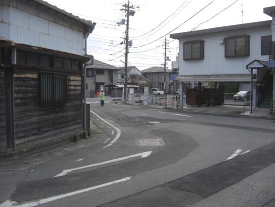 左にカーブして直ぐまたT字路を右に折れる 枡形の辻です。