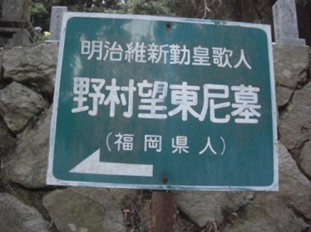 望東尼は福岡の歌人、激動期の幕末志士のかげにあって活躍した女流勤王家である。薩長連合がなり、討幕軍が三田尻から出陣しょうとするとき、奇寓先山口から防府に来て、防府天満宮に七日間参籠し断食して王政復古を祈った。断食後間もなく病を得て慶応三年十一月六日、六十二歳で没した、のち正五位を贈られる。