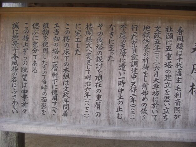 昨日見た五重塔が途中で中止なった建物。この楼上からの眺望は四季折々絶景が眺められる