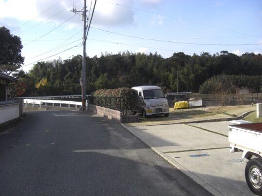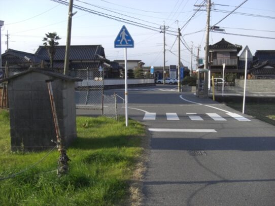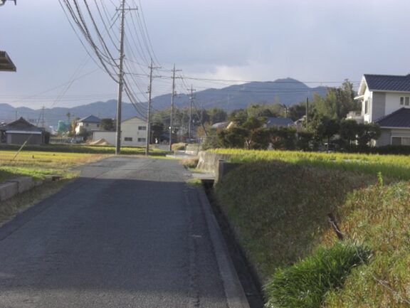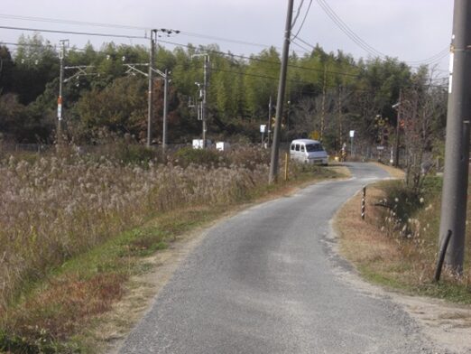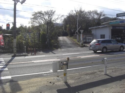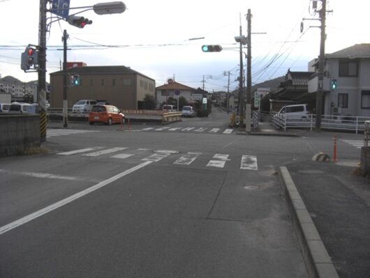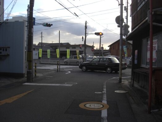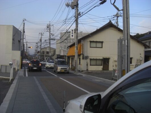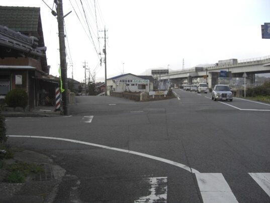 今宿東信号交差点がありますが、その手前、左斜めに入る道がみえます、横断歩道もなく危険ですので先の今宿東信号で迂回してきて向かいの道に出ます