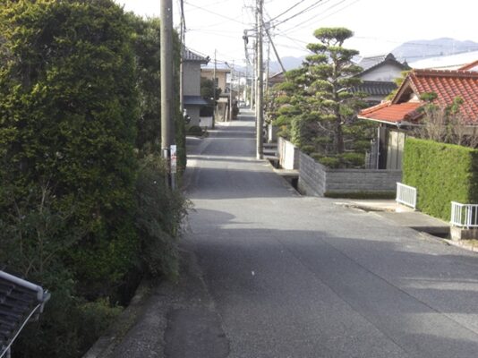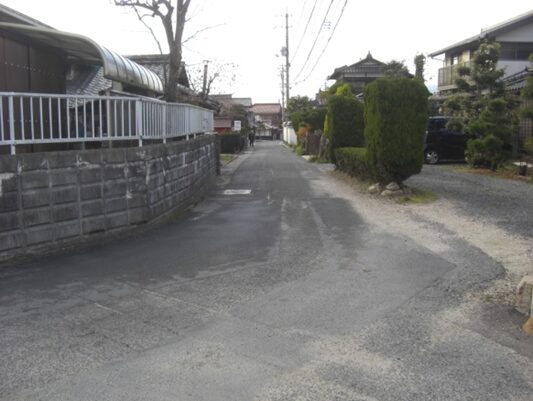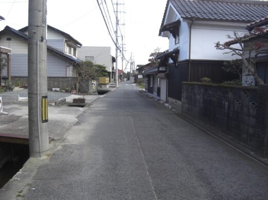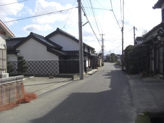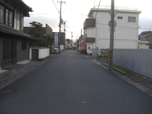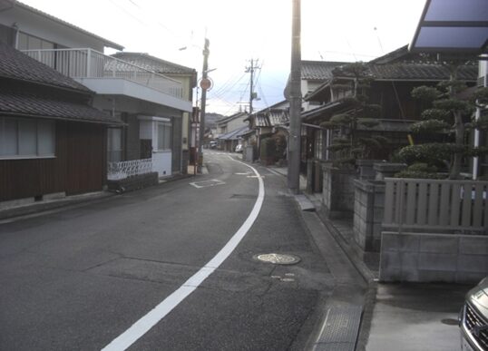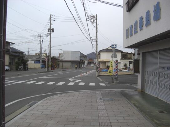 真っ直ぐの西への小郡宿の入口の街並みを進みます