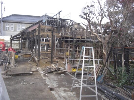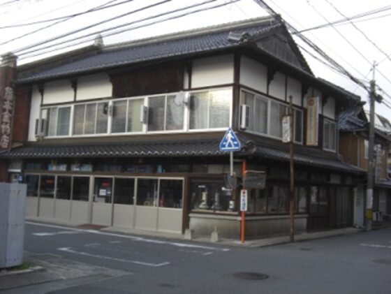 信号交差点のすぐ先の十字路、右手に旧家の藤本金物店があります。十字路の北角に 高札場 がありました