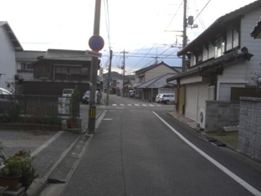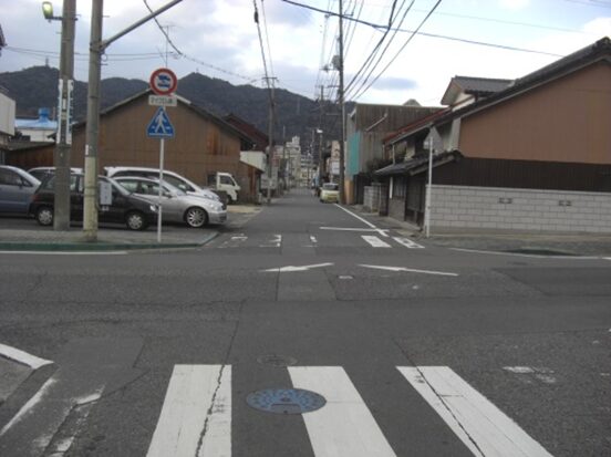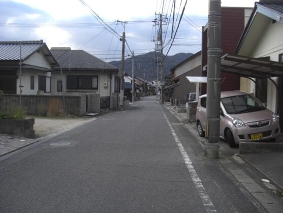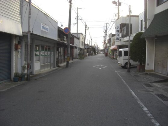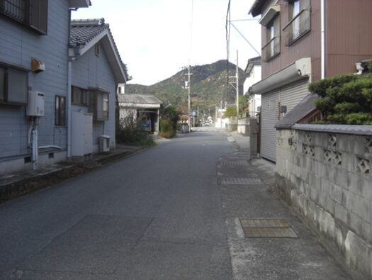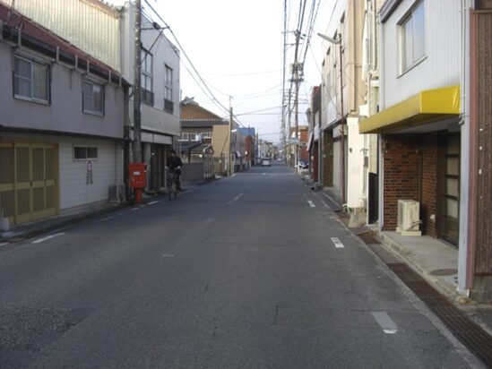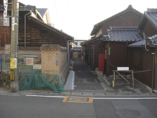 左に折れた枡形の街並みこの辺り 古代山陽道の陶市跡