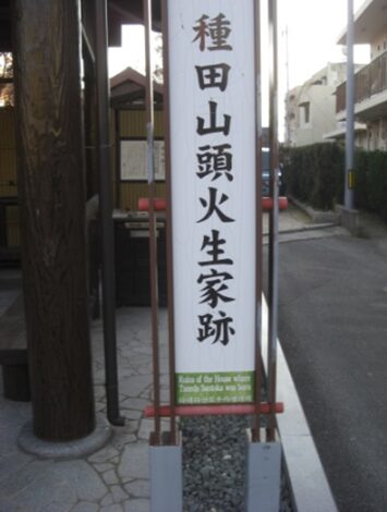 自由律俳人種田山頭火は明治十五年、大地主の長男としてこの地、防府市八王子二丁目十三に生まれた。早稲田大学中退帰郷して父と酒造業を営むが失敗し、妻子を連れて熊本に移る。大正十四年(44歳)出家したが、まもなく全国行脚の俳人となる。