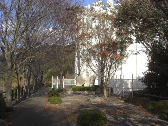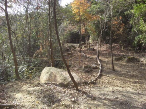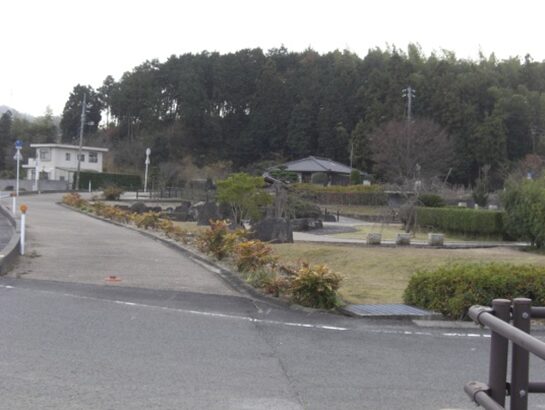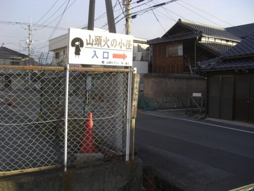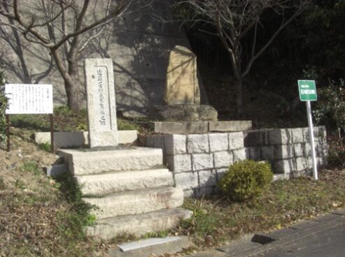 9世紀前半から約150年にわたって貨幣を鋳造した工房跡である。積水ハウス山口工場の隣、草地の中に白い標示板が見えます